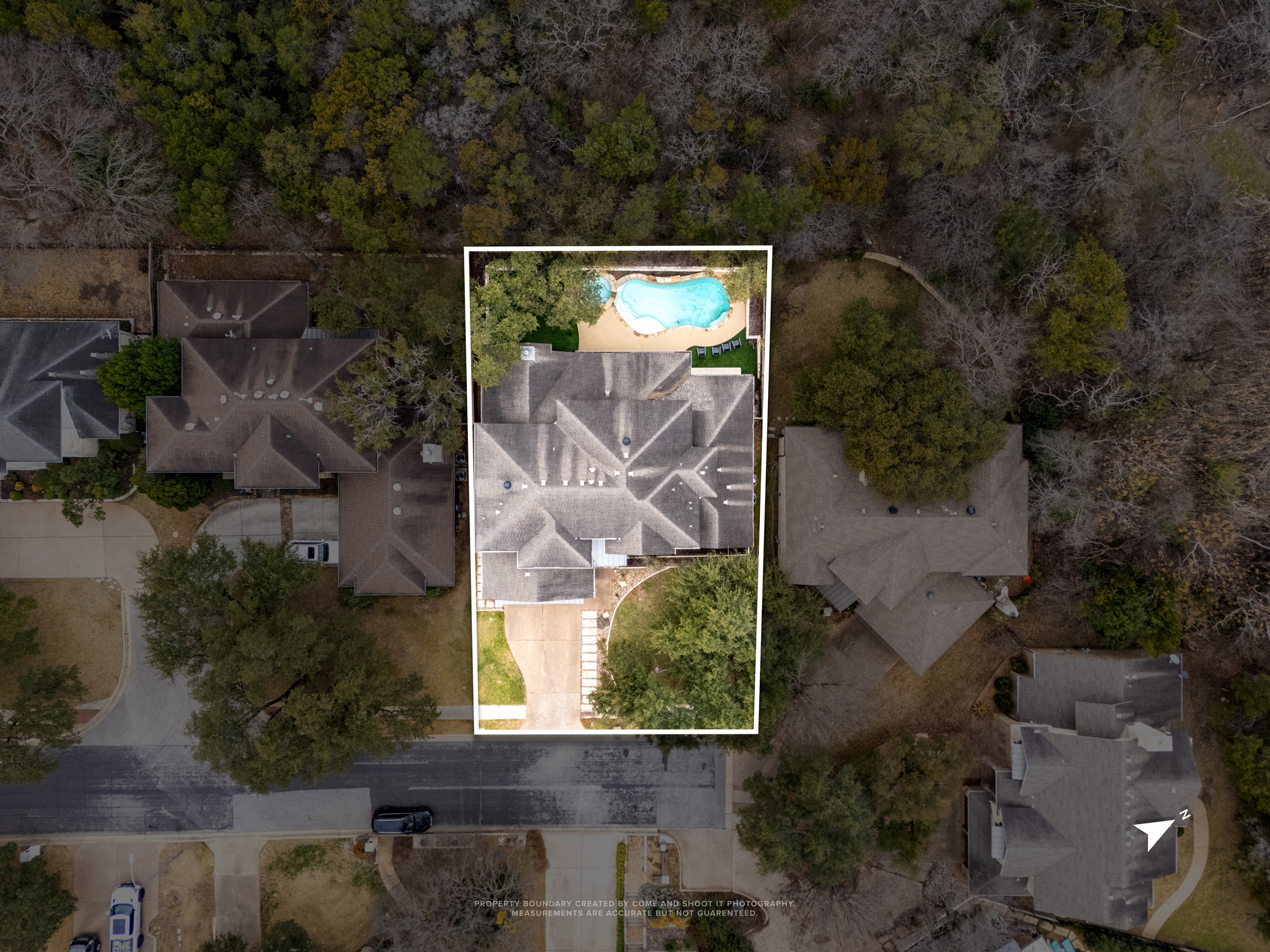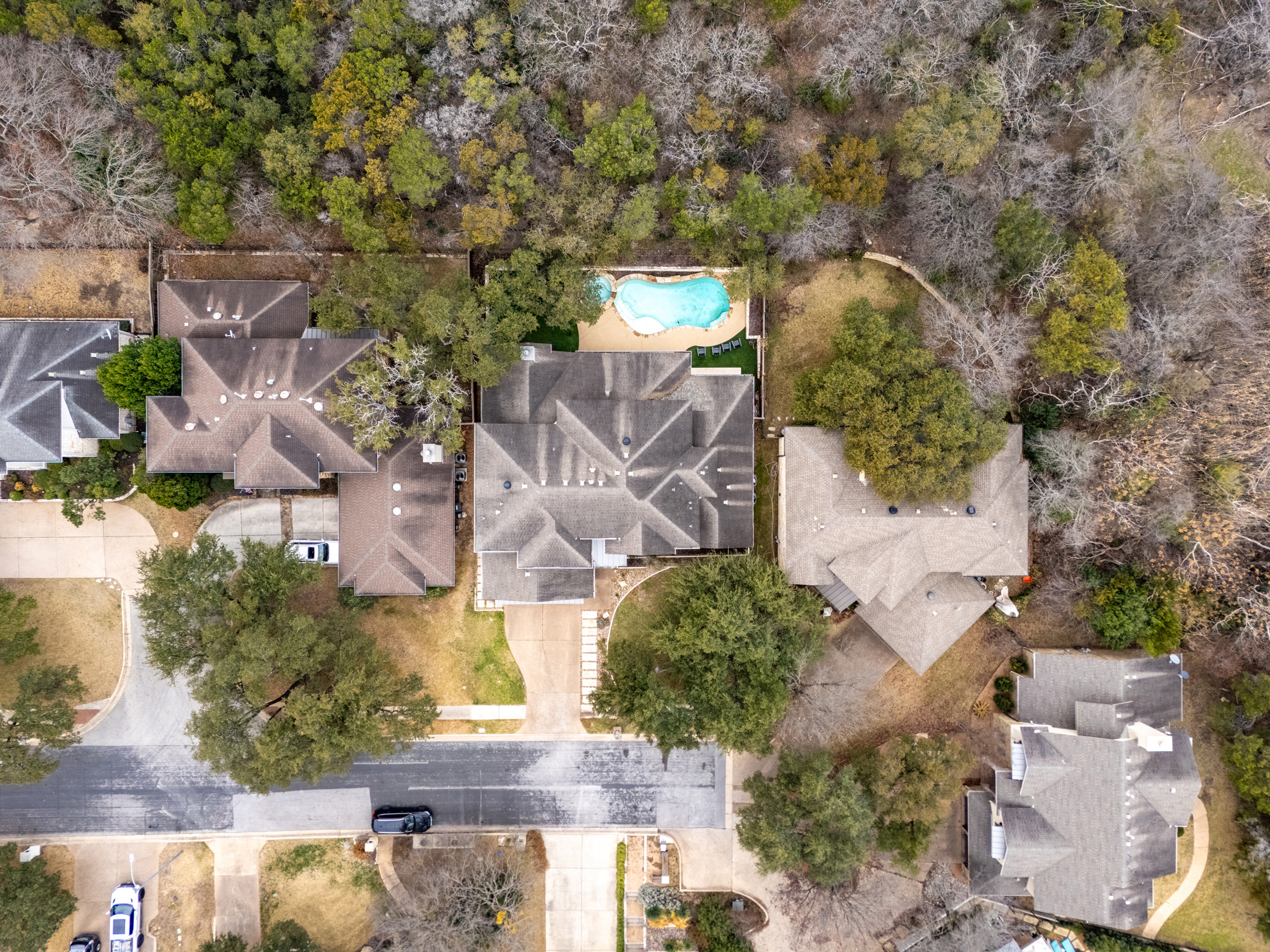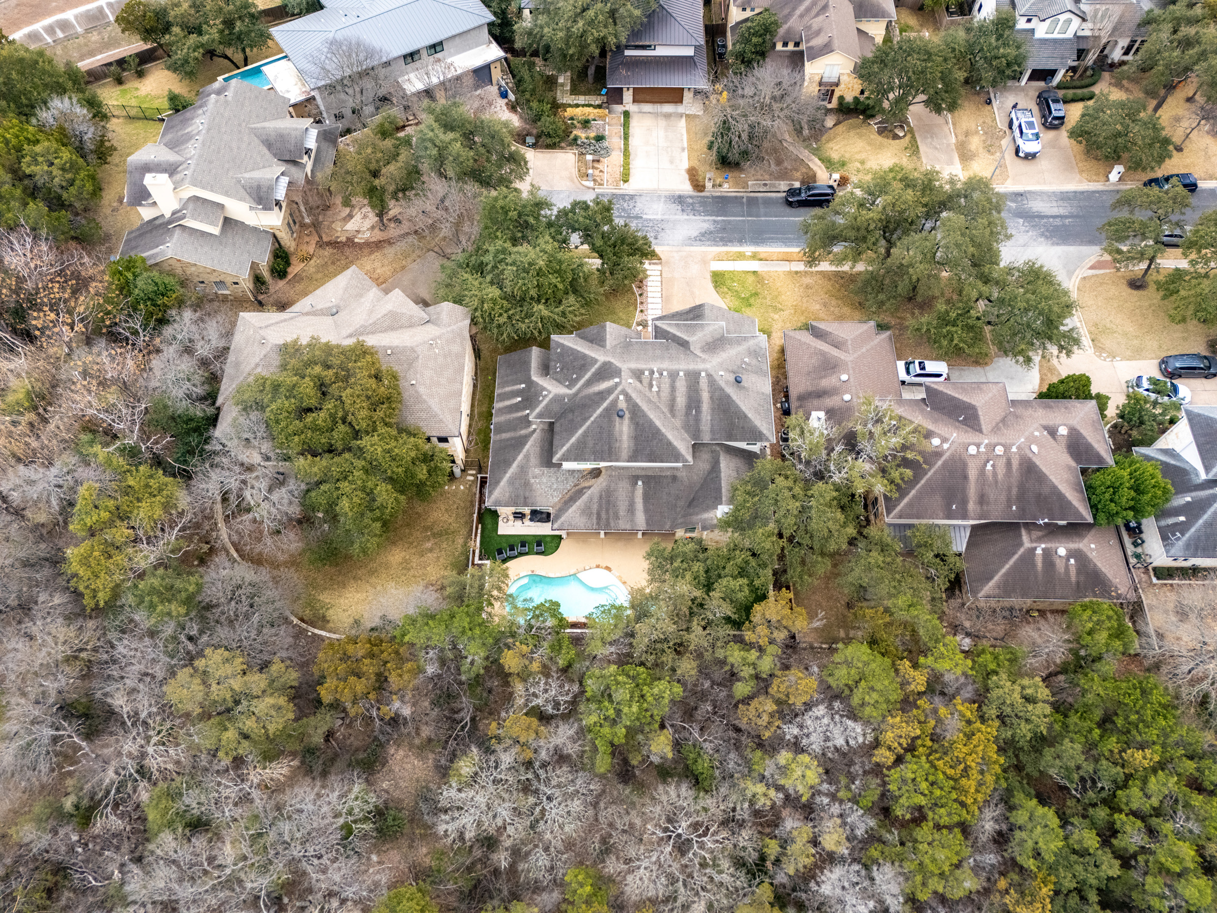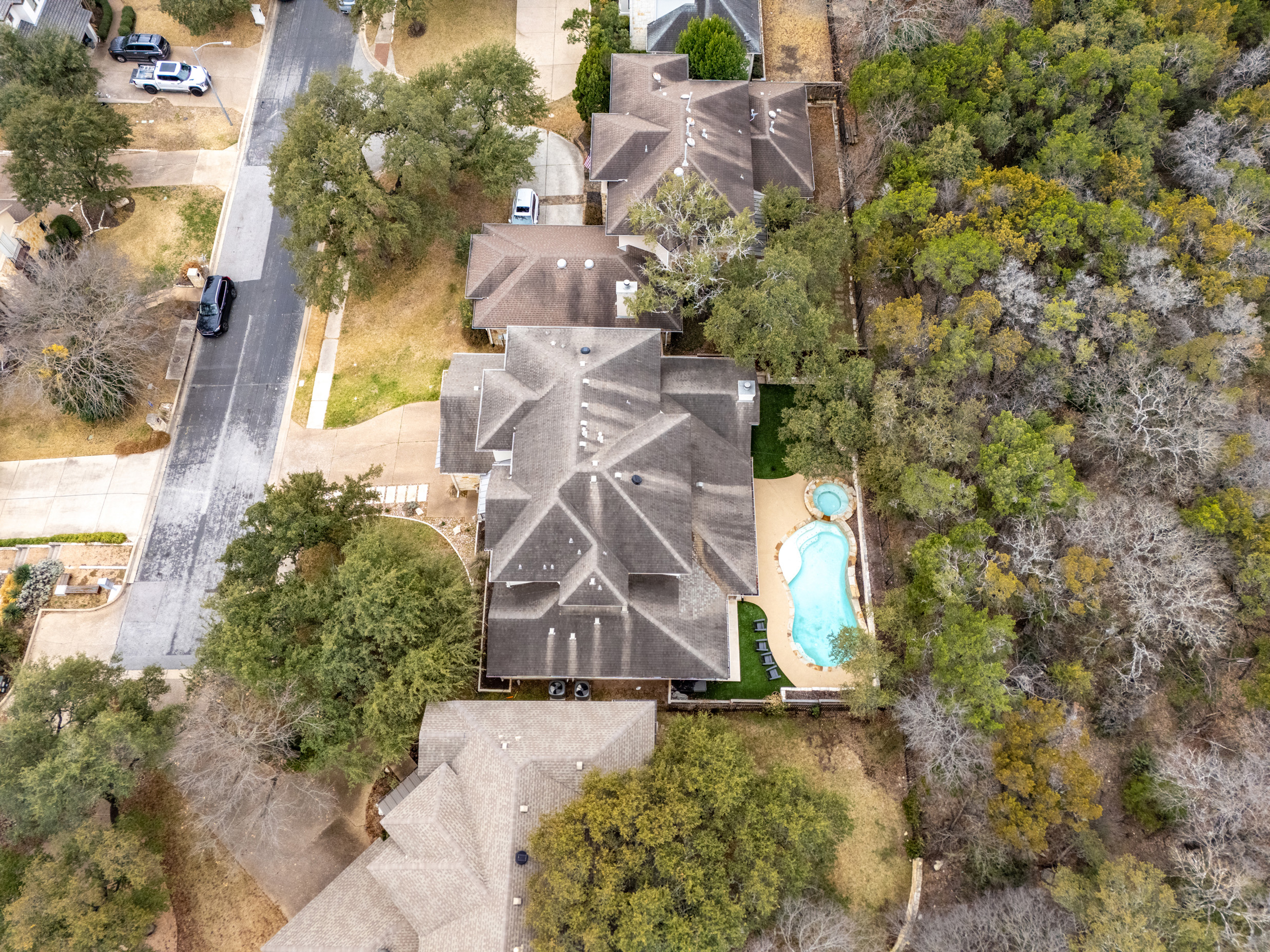 Located in The Overlook at Treemont in Westlake, this refined residence is tucked away on a quiet cul-de-sac, offering privacy, walkability, and a serene greenspace backdrop- within walking distance to Cedar Creek Elementary and Hill Country Middle School. A dramatic 20-foot foyer creates a striking first impression, crowned by a draped glass bronze chandelier that sets the tone for the home’s design-forward sophistication. White oak flooring flows throughout, complemented by plantation shutters, custom paint colors, and carefully curated designer details.