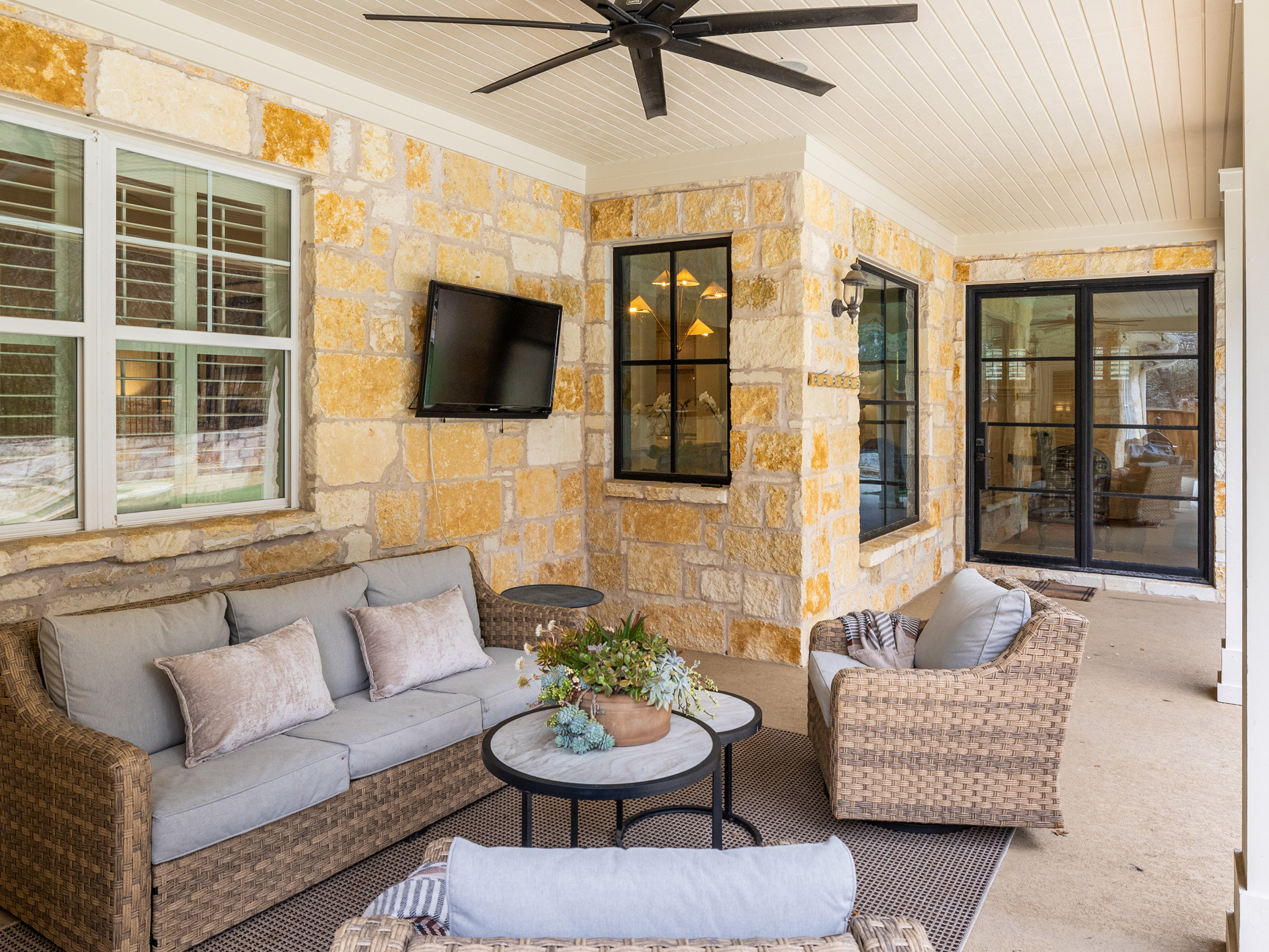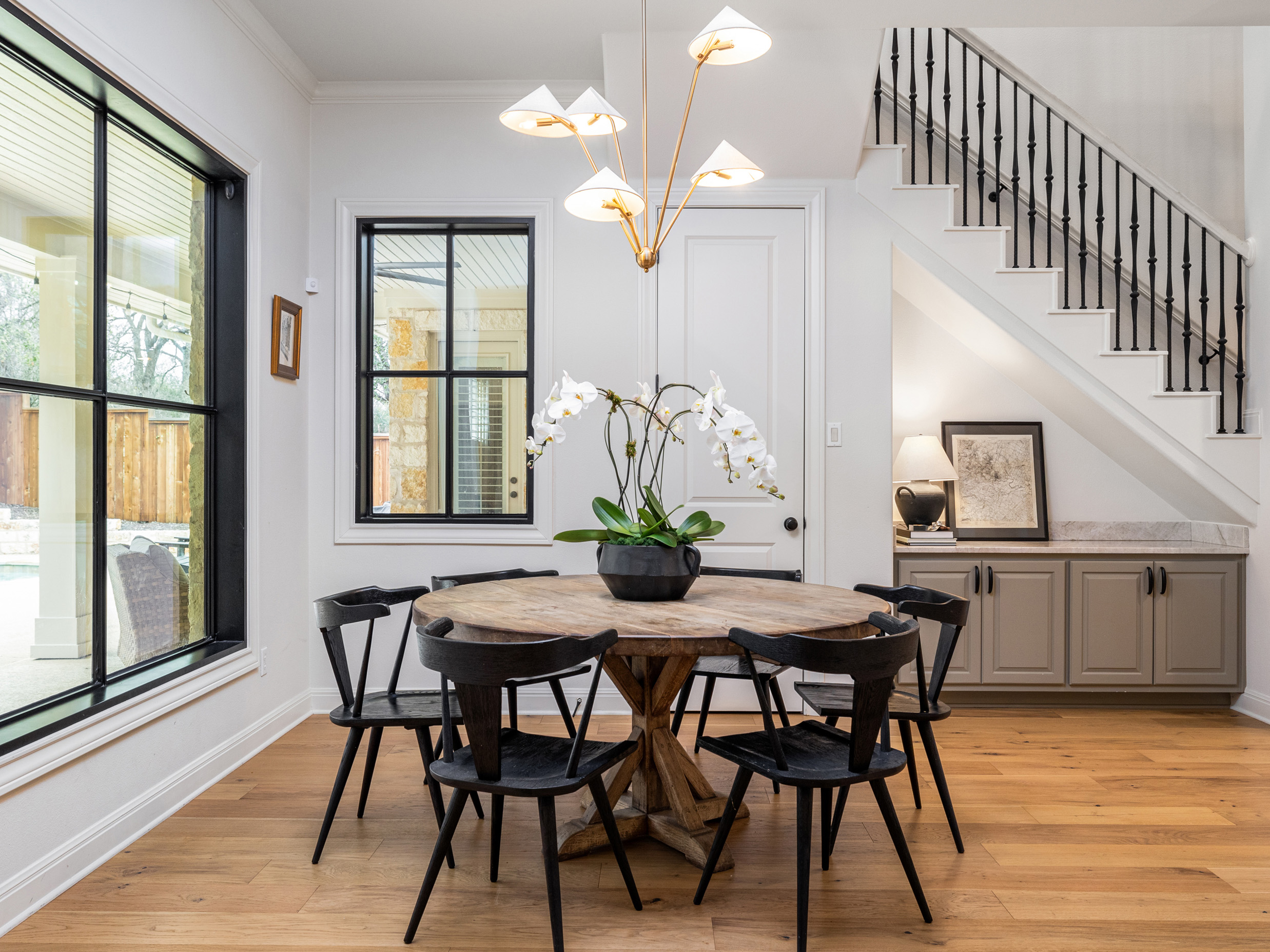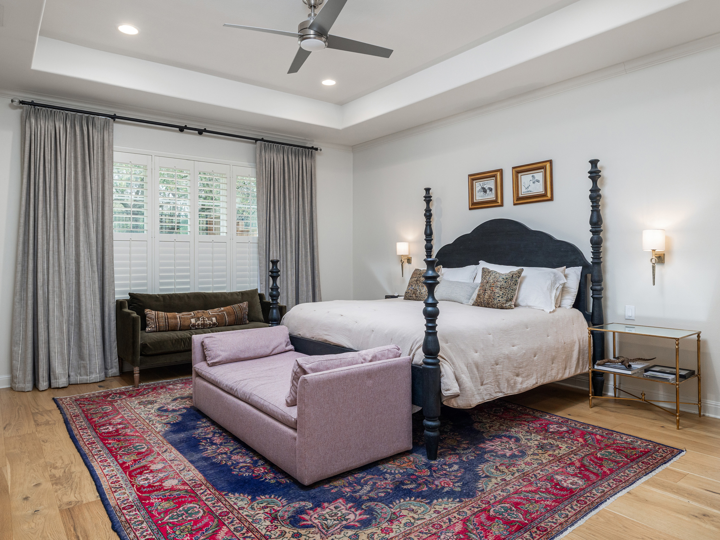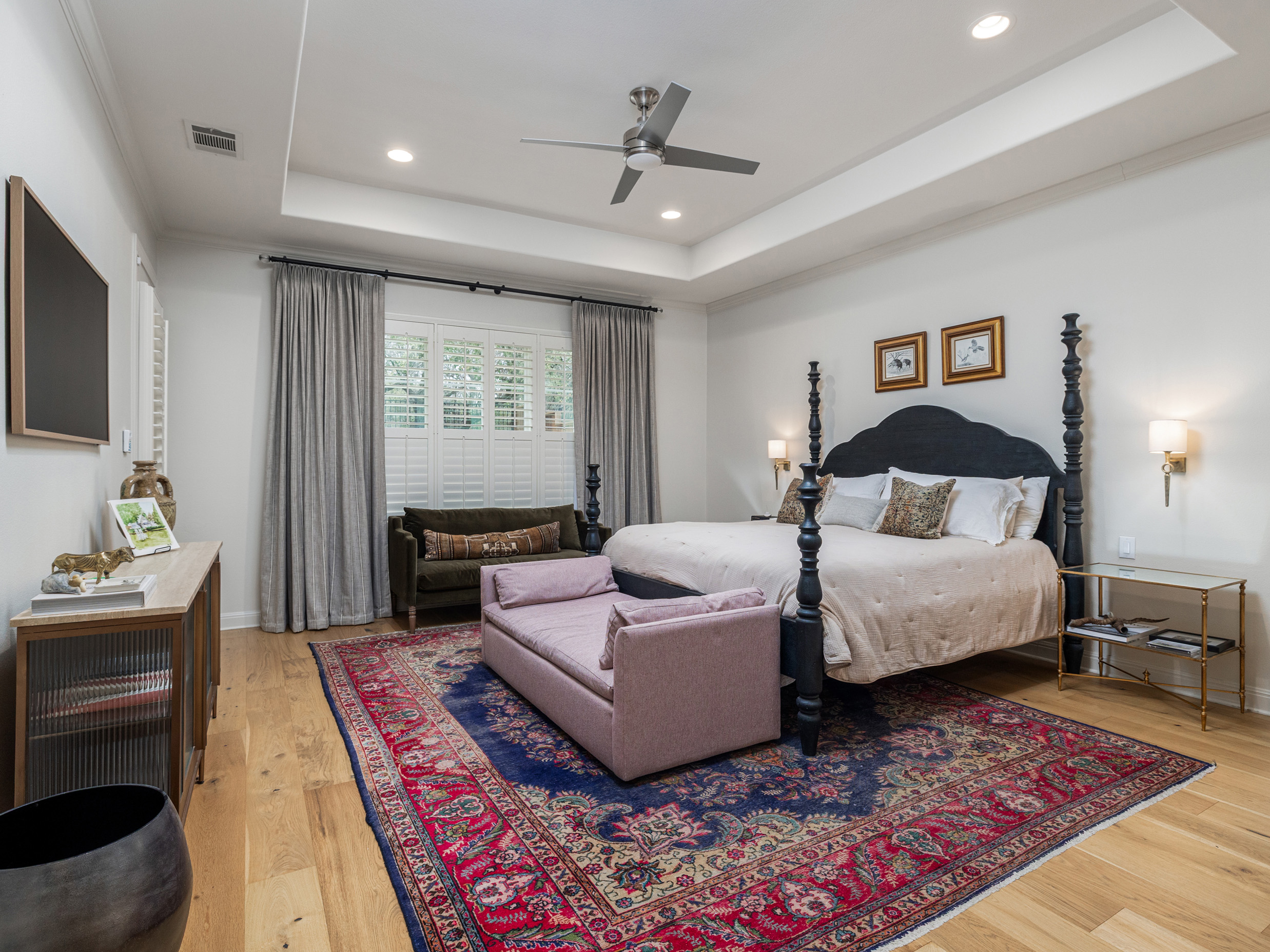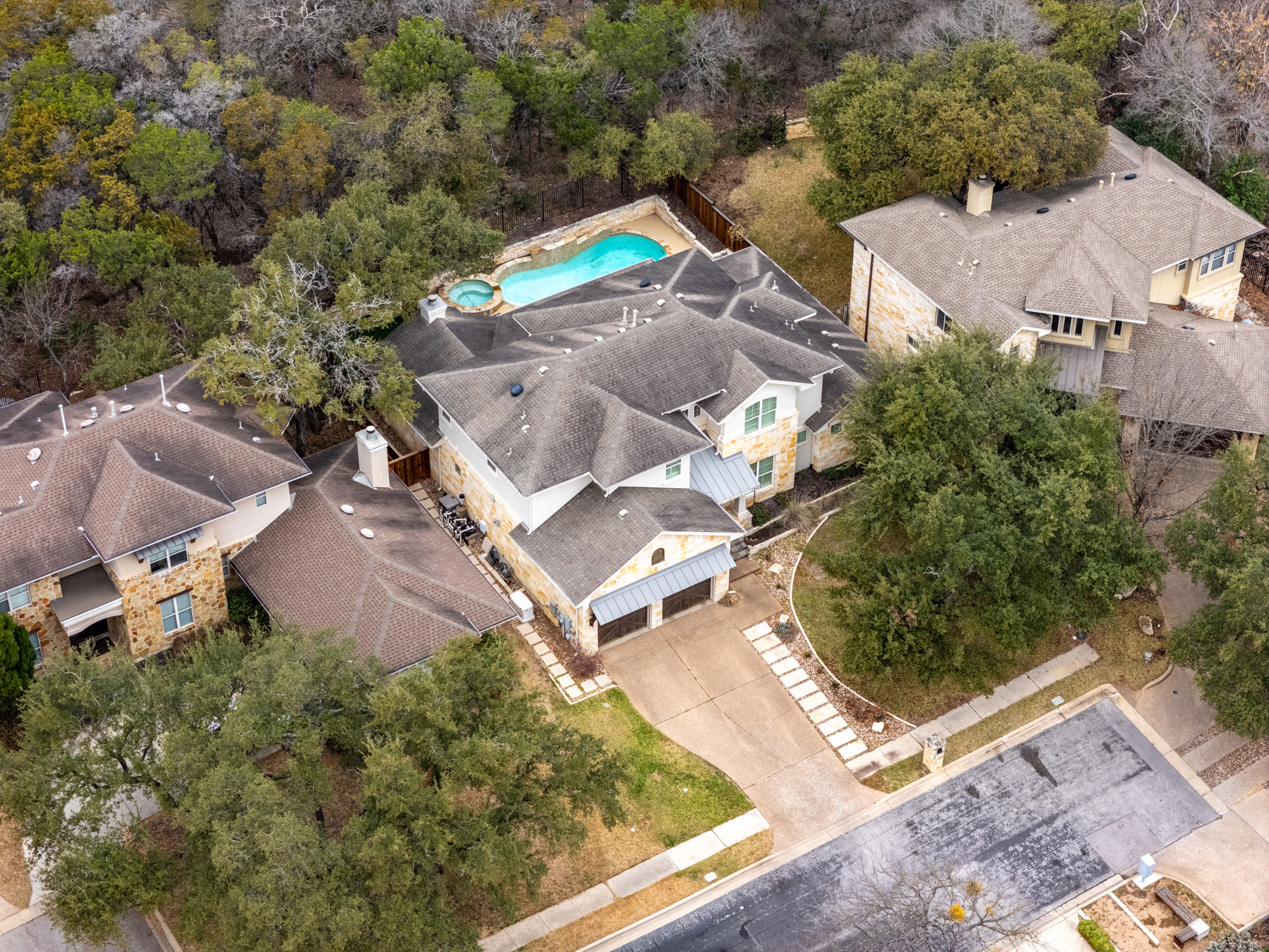 Located in The Overlook at Treemont in Westlake, this refined residence is tucked away on a quiet cul-de-sac, offering privacy, walkability, and a serene greenspace backdrop- within walking distance to Cedar Creek Elementary and Hill Country Middle School. A dramatic 20-foot foyer creates a striking first impression, crowned by a draped glass bronze chandelier that sets the tone for the home’s design-forward sophistication. White oak flooring flows throughout, complemented by plantation shutters, custom paint colors, and carefully curated designer details.