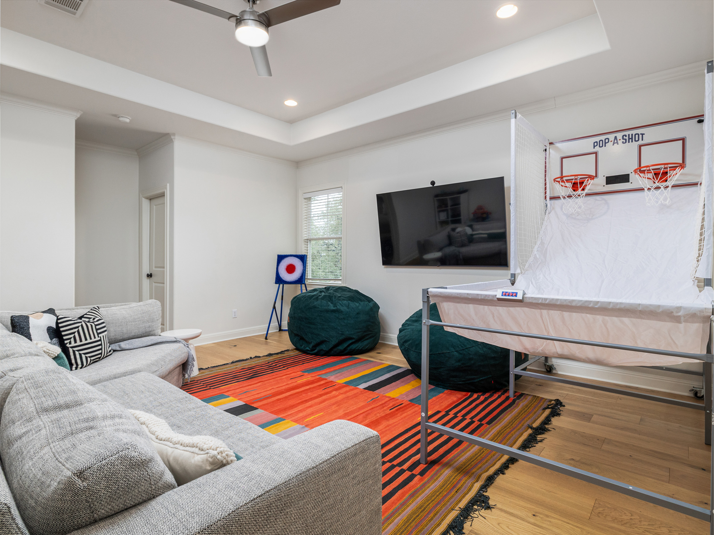 Upstairs, a built-in homework bar, spacious game room, and a well-planned bedroom layout include an en-suite bedroom and two additional generously sized bedrooms connected by a Jack-and-Jill bath.
